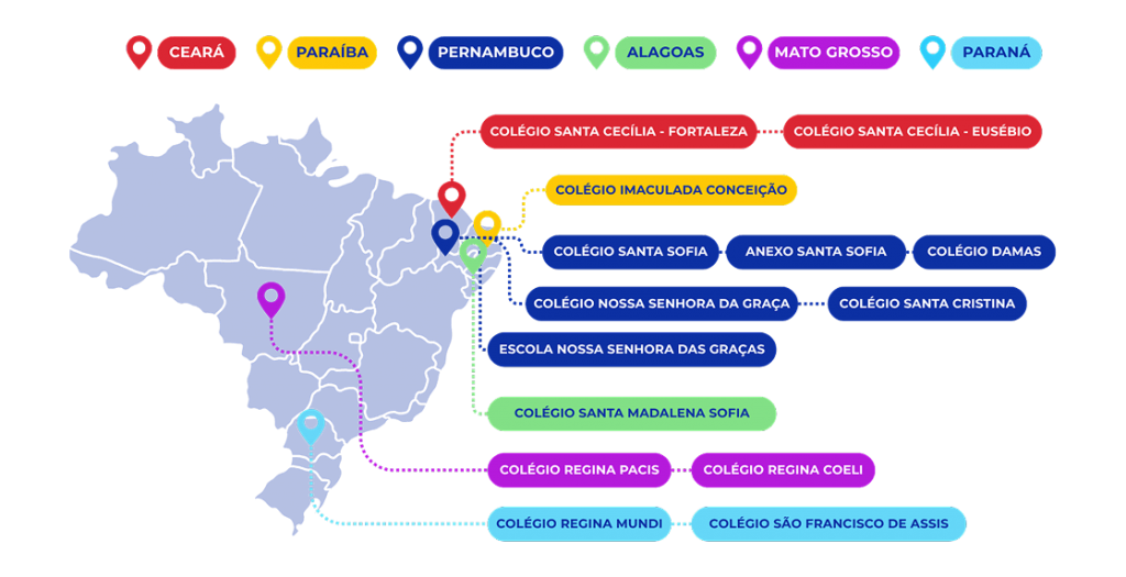 Com 14 escolas no Brasil, abraçamos o propósito de educar para inspirar pessoas e transformar o mundo. Impulsionados pelo Carisma das Religiosas da Instrução Cristã, instituto bicentenário, exercemos com responsabilidade e afeto a missão de formar a pessoa humana com base nos valores cristãos, éticos e acadêmicos, de maneira participativa e comprometida, encarnando a face atual do Cristo Educador para construir uma sociedade sustentável.
